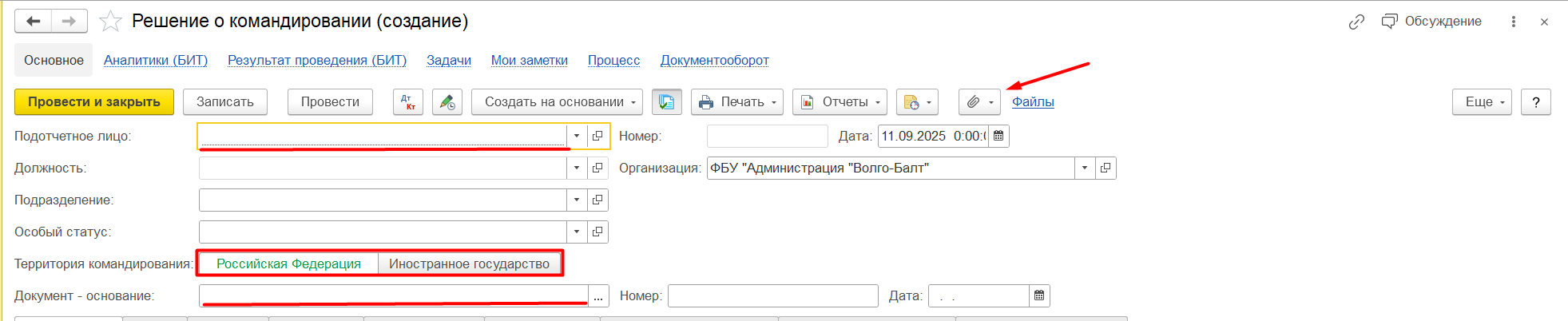 БГУ 2.0 ФБУ с 2025 года) для оформления Решения о командировании.