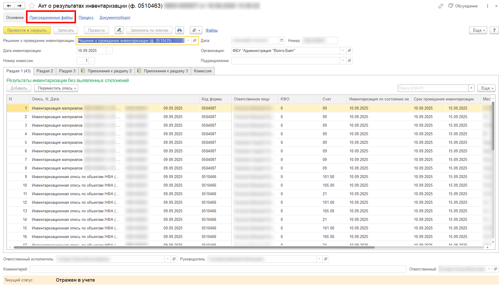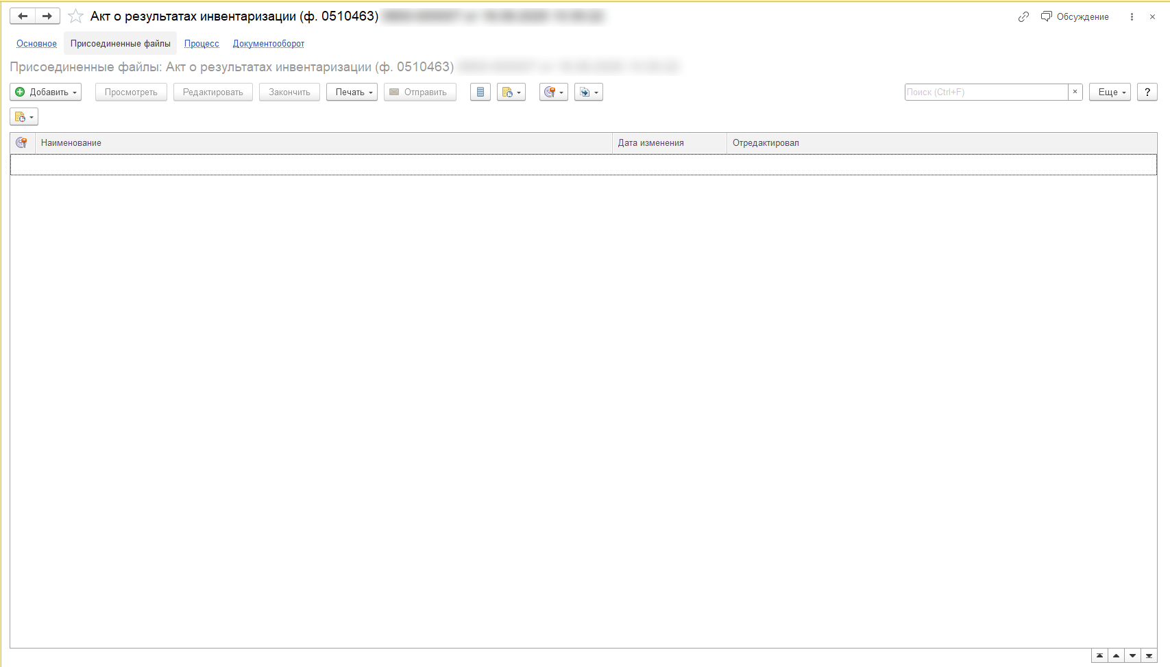 После того как вы присоединили файл, выходите из документа, нажимая «крестик» в правом верхнем углу формы. Если вы не будете нажимать на кнопку Провести и закрыть, после подсоединения файла программа не будет требовать перепроводить документы.
