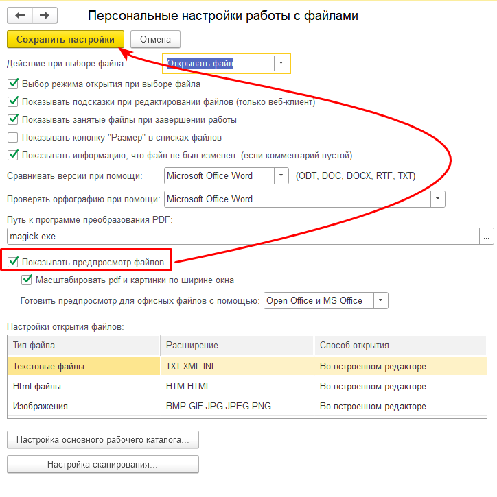 Отключение предпросмотра файлов в 1С:ДО Для отключения предпросмотра файлов в 1С:Документооборот перейдите в Настройки -> Персональные настройки.Уберите галочку с "Показывать предпросмотр файлов" и нажмите "Сохранить настройки". Теги 1С:Документооборот Опубликовано 18.09.2025 17:23