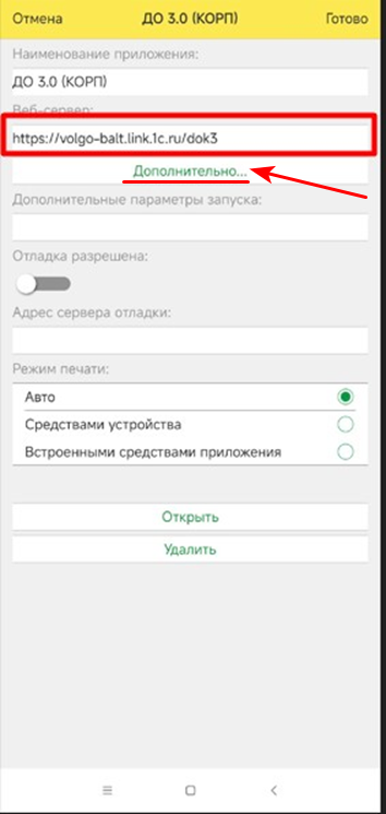 5. Введите адрес веб-сервера: https://volgo-balt.link.1c.ru/dok3