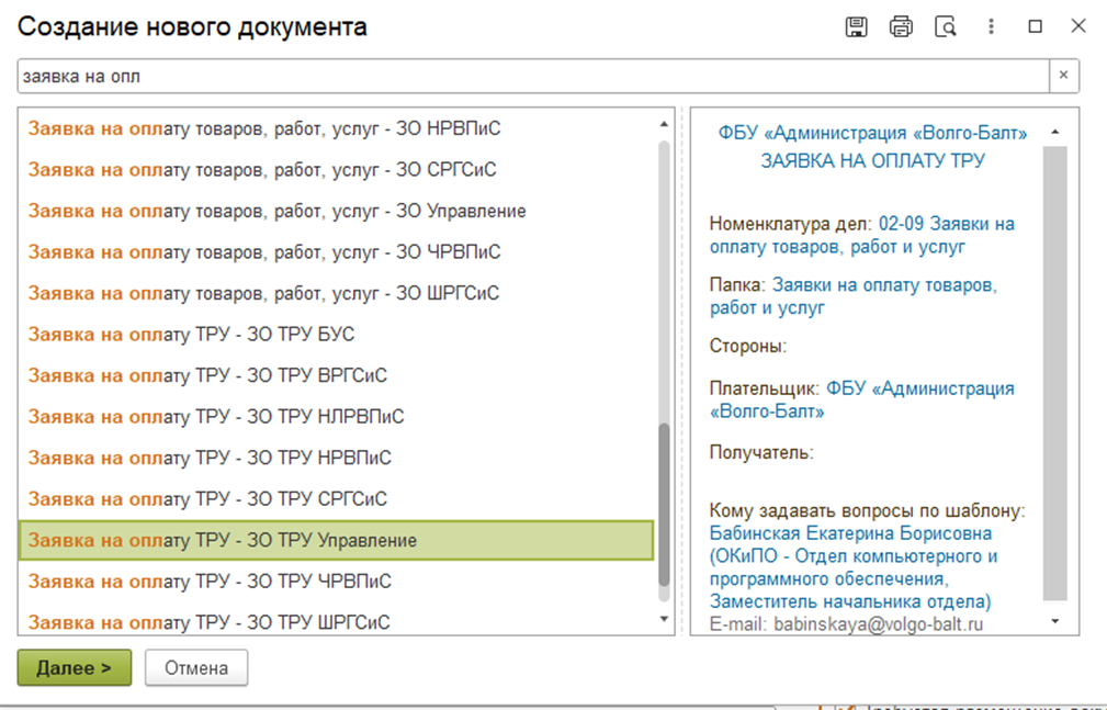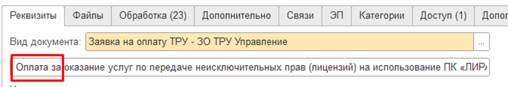 Инструкция по оформлению документа «Заявка на оплату ТРУ»