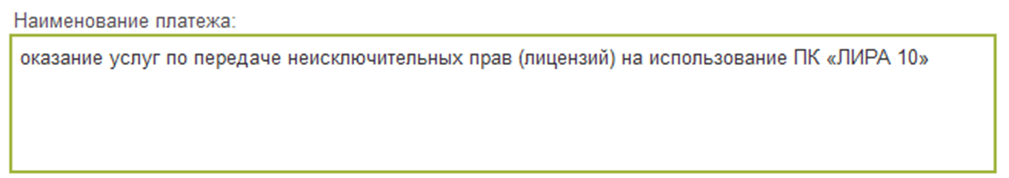 - Наименование платежа, предмет оплаты