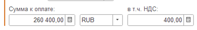 - Сумма к оплате, в т.ч. НДС