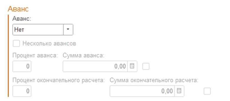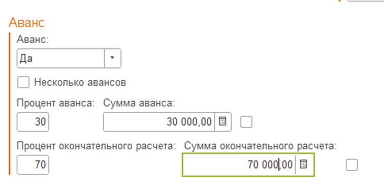Процент и сумма аванса