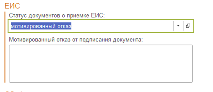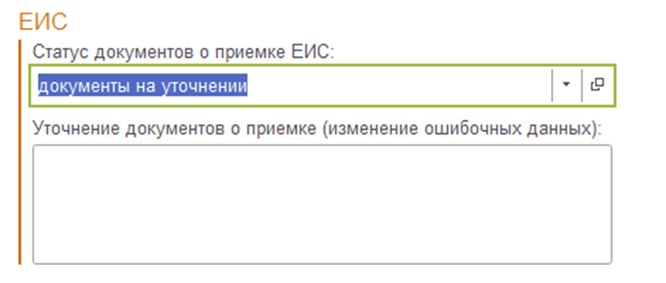 Если сведения об исполнении: «ЕИС», то проставляется статус документов о приемке ЕИС, он может быть 3 видов: