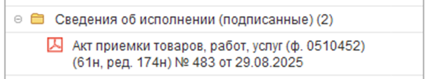 3.1. Если сведения об исполнении: «ЕИС», то 452 Акт приемки ТРУ не формируется Инициатором, а подписание первичных закрывающих документов о приемке/УПД/Акта приемки оказанных услуг, выполненных работ с подписантом, организует КО.