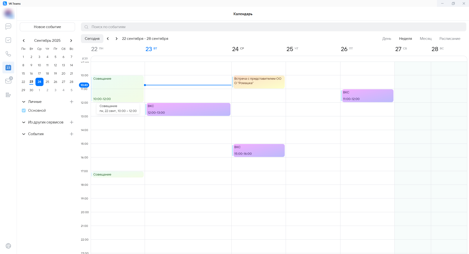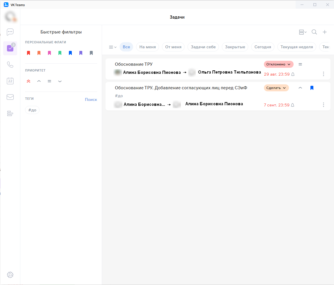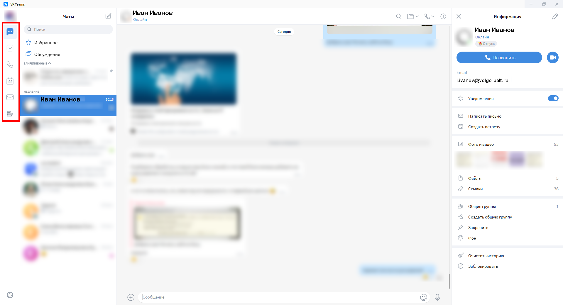 Интерфейс приложения VK Teams