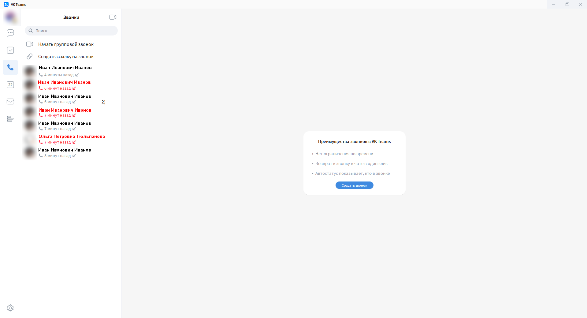 Сервис Звонки позволяет начать новый звонок прямо сейчас или создать ссылку для присоединения к звонку в любое время.