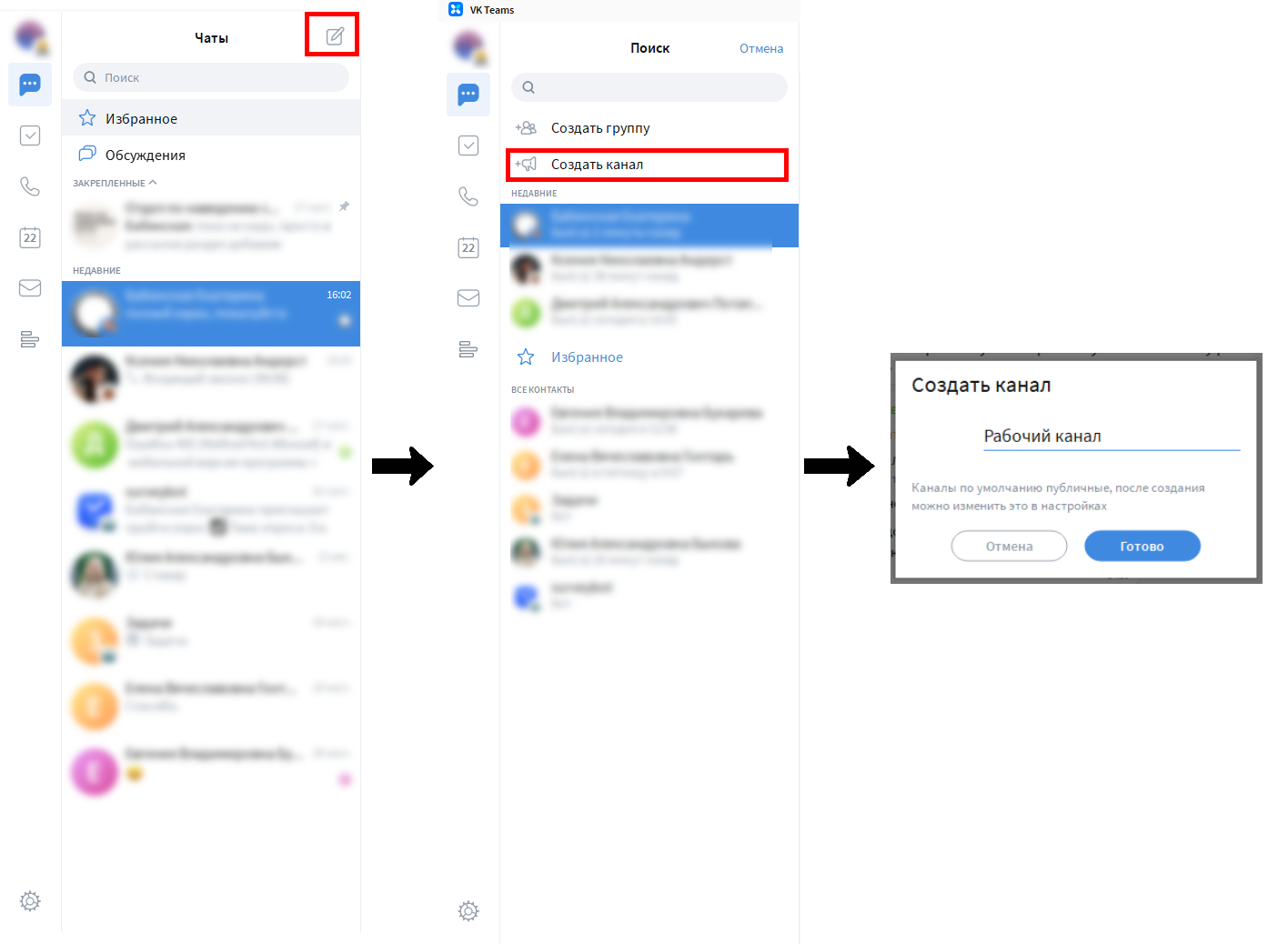 Чаты – Создание канала