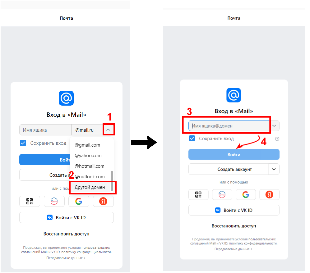 Вход в Почту и Календарь