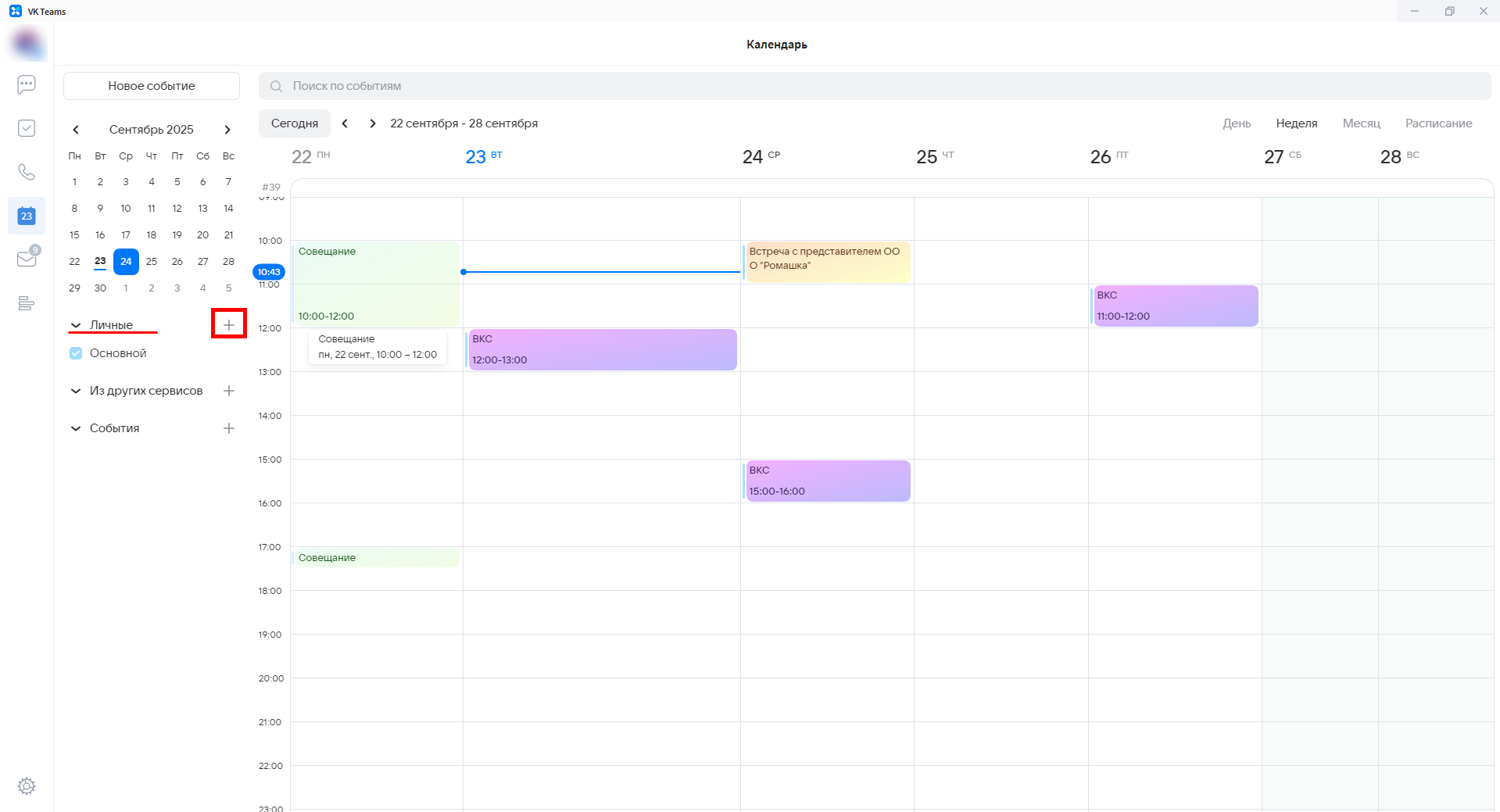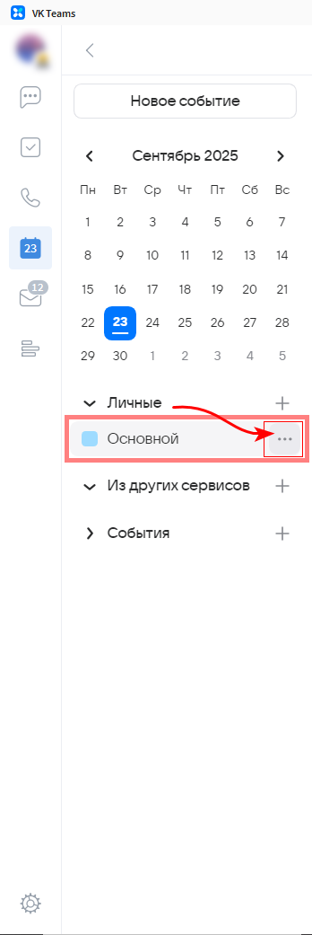 Для создания дополнительных календарей необходимо кликнуть на иконку "+" во вкладке Личные раздела Календарь.