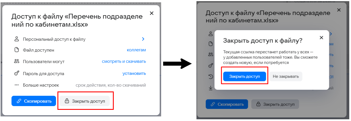 В открывшемся окне ограничьте доступ, нажав Закрыть доступ и подтвердив выбор.