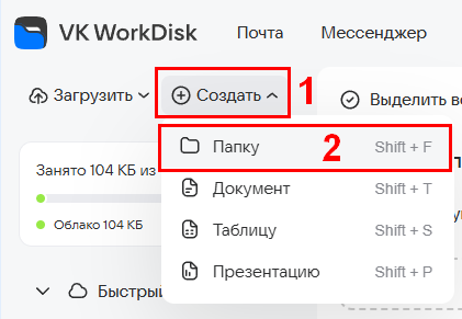 При работе с Диском VK WorkSpace можно использовать следующие горячие клавиши: