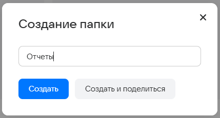 - Нажмите Создать или Создать и поделиться, если хотите сразу сделать папку общей.