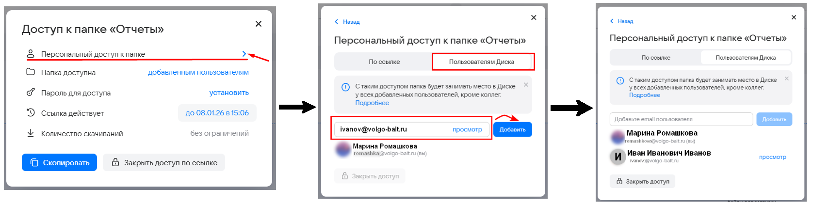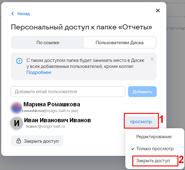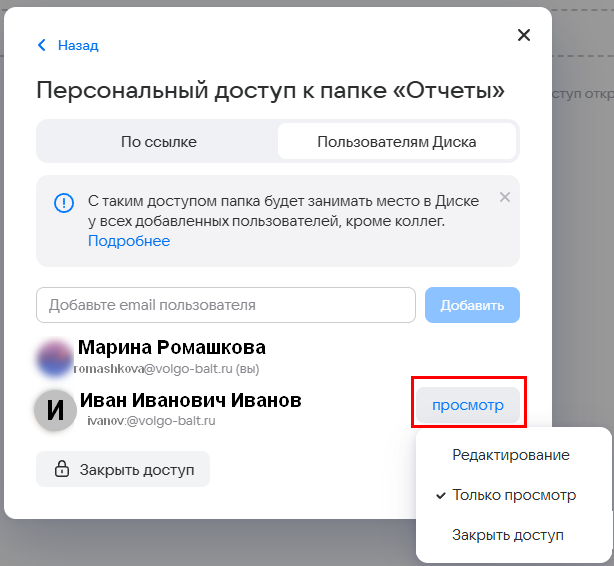 Поделиться папкой с помощью добавленных пользователей