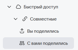 Все папки, которыми вы поделились с другими пользователями, а также папки, которыми поделились с вами, отображаются в разделе Быстрый доступ → Совместные → С вами поделились.