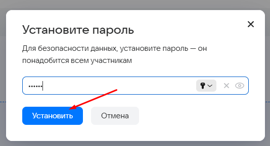 Откроется окно настройки пароля. Задайте пароль и нажмите кнопку Установить.