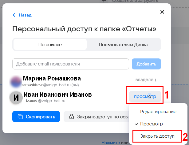 Закрыть доступ персонально: