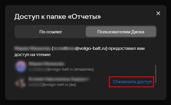 Если вы не планируете больше пользоваться папкой, к которой вам дали доступ, вы можете её отключить, и она не будет отображаться в вашем облаке.