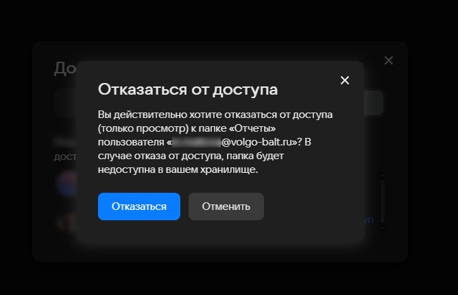 Подтвердите отключение доступа, нажав на Отказаться.