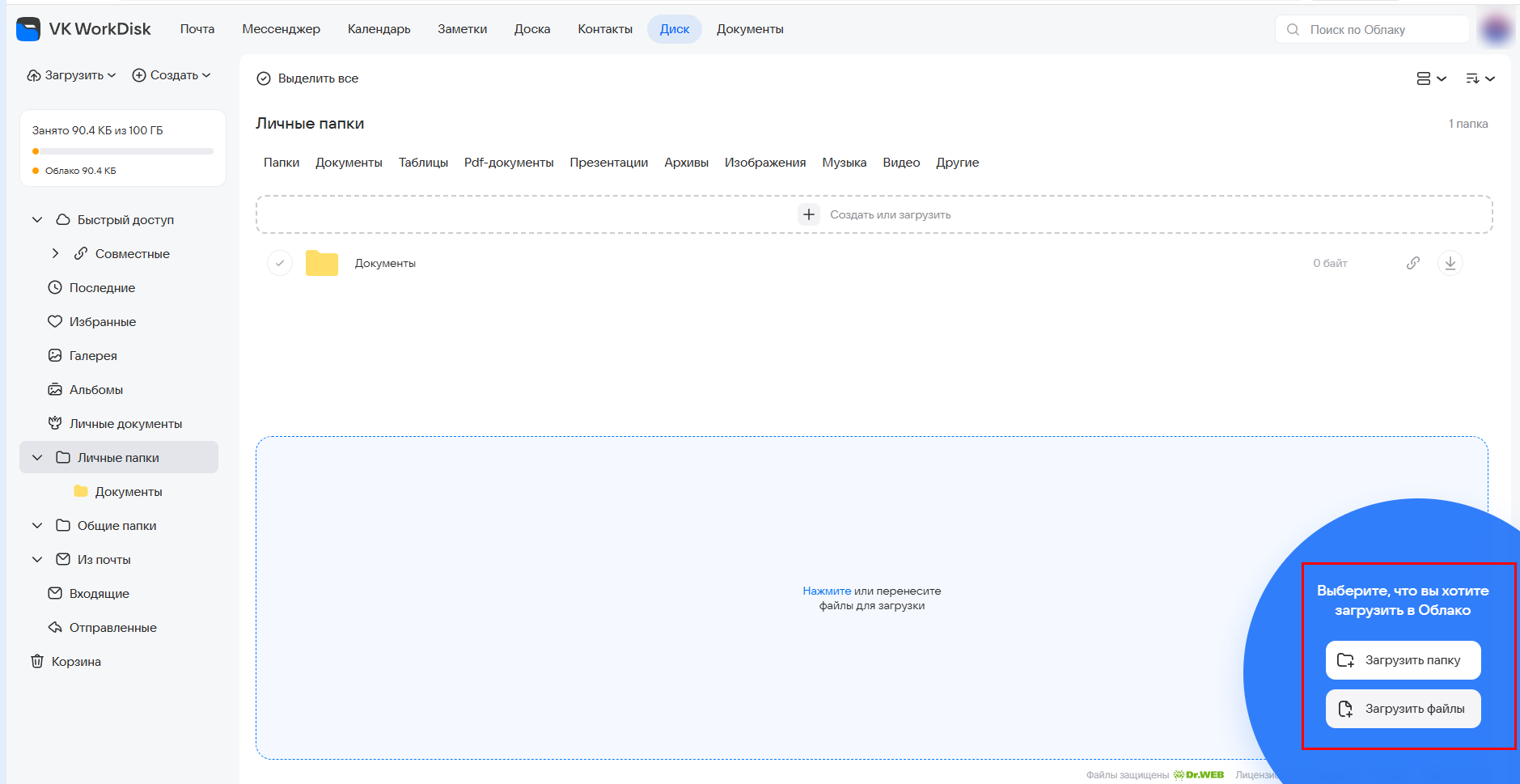 Вы можете подключить облако VK WorkSpace по протоколу WebDAV. Таким образом облачное хранилище будет представлено на вашем компьютере в виде стандартного файлового сервера.