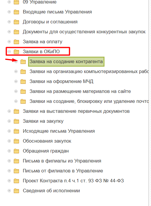 1. Заявки по созданию контрагента находятся в папке: Заявки в ОКИПО -> Заявка на создание контрагента