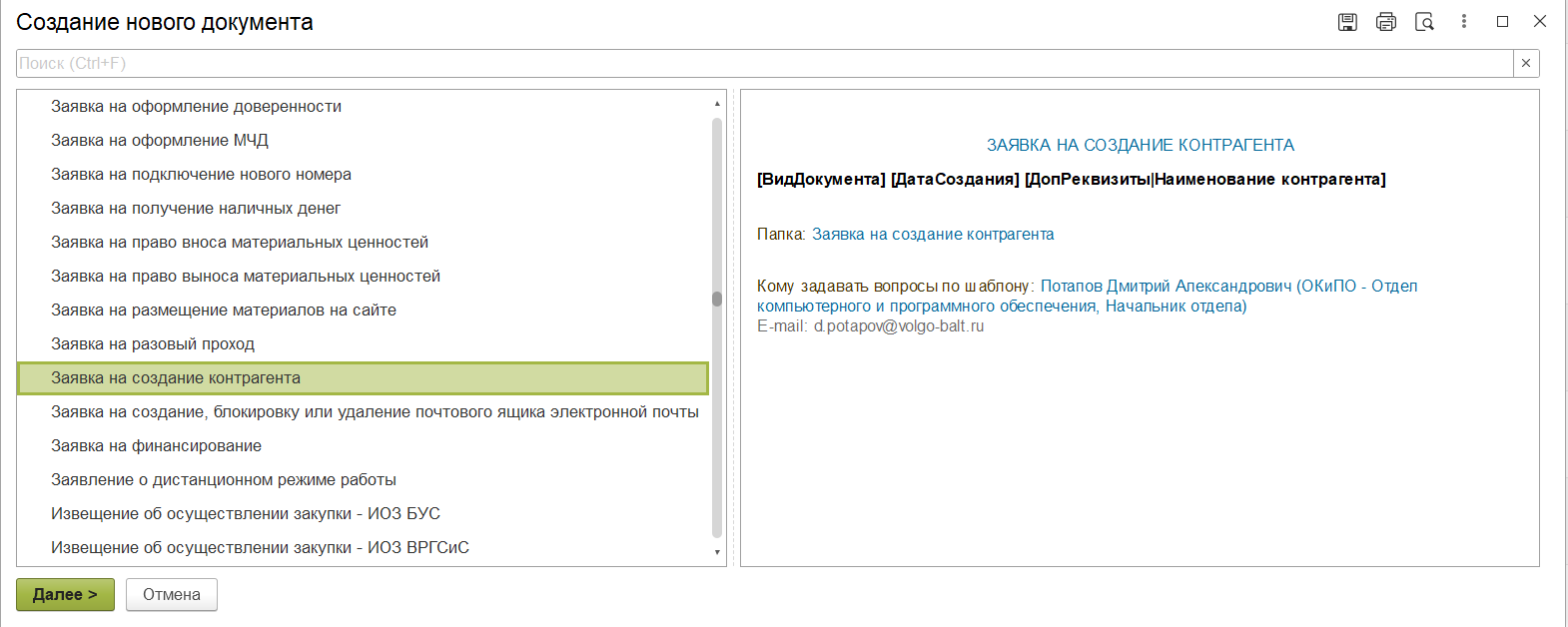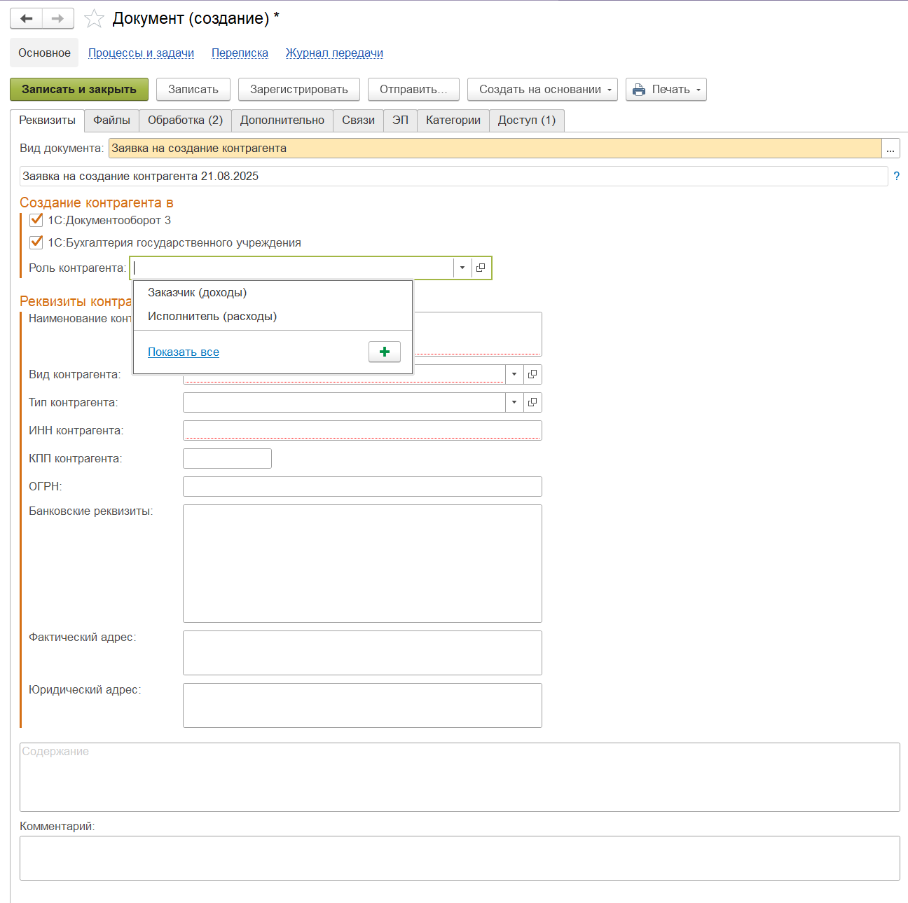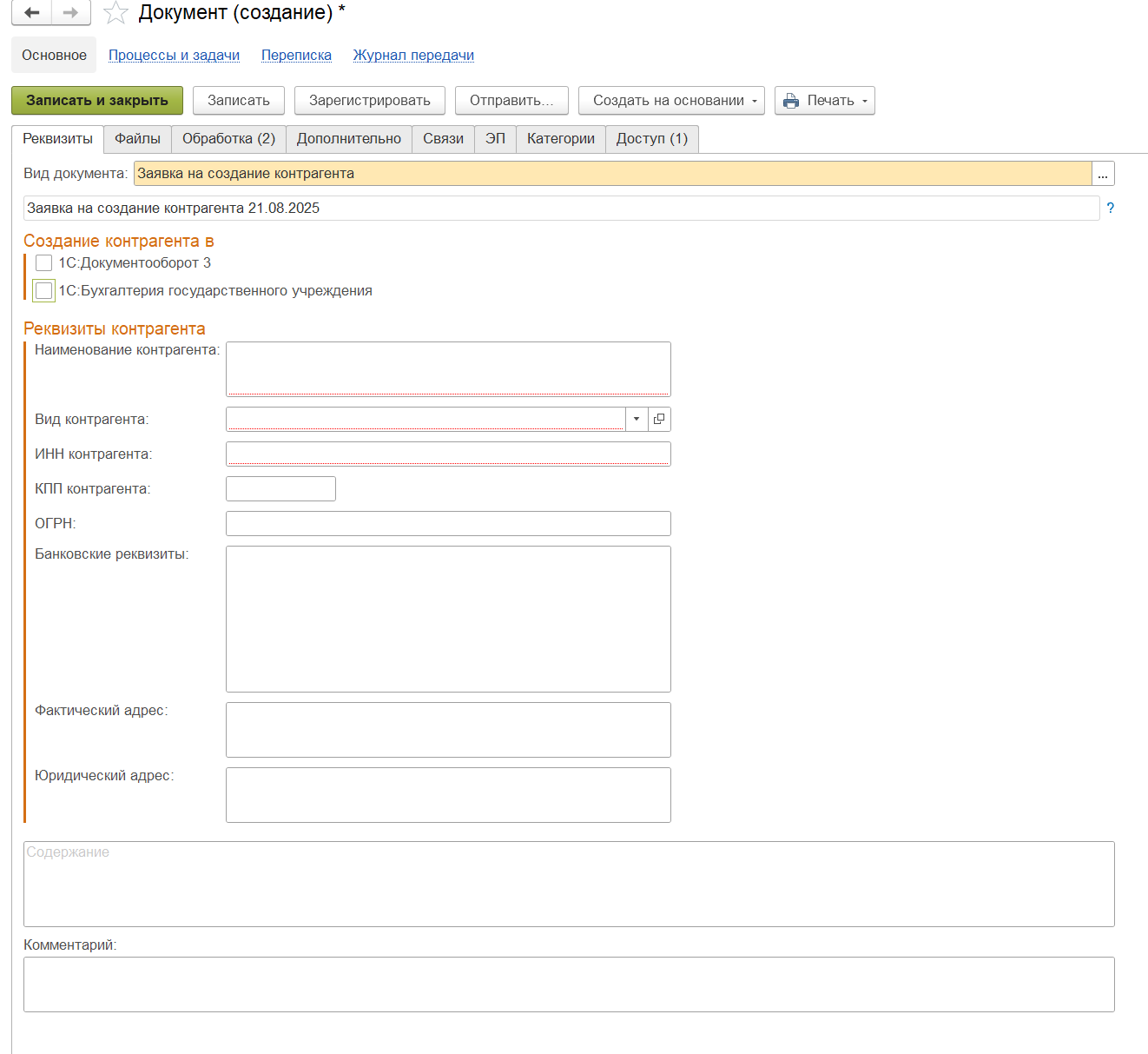 Инструкция по оформлению «Заявки на создание контрагента в 1С:БГУ и 1С:Документооборот»