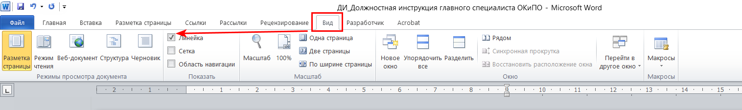 2. В верхней линейке потяните за стрелкой